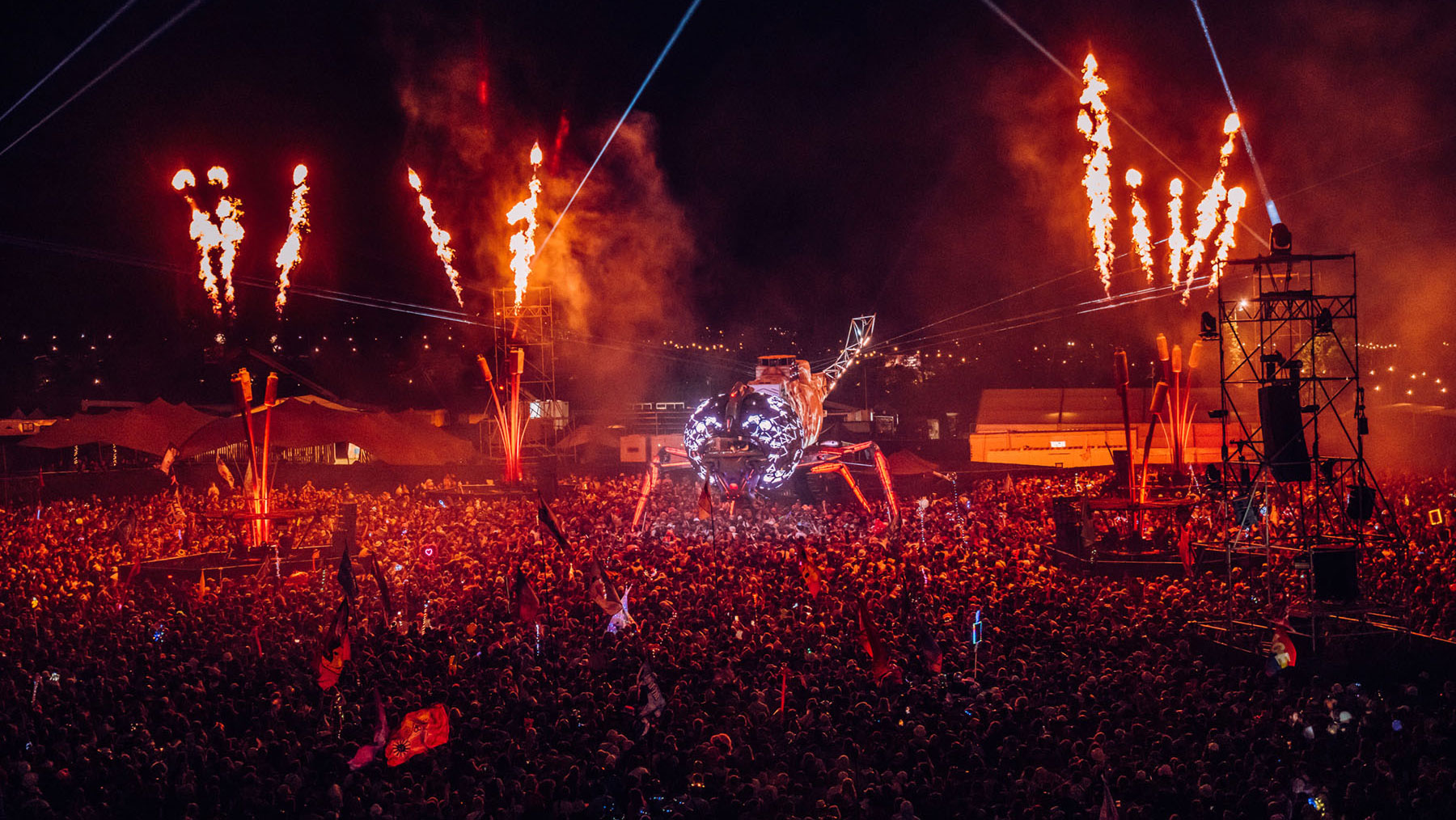 The sculpture ‘awakened’ every night at 11.30 during a nine-minute show, Warraloo, developed by Arcadia in collaboration with the Wadjuk Noongar nation of Western Australia and based on the Dragonfly’s pupation cycle. This was followed by a full line-up of DJs and artists playing over the three main performance days of Glasto 2024.