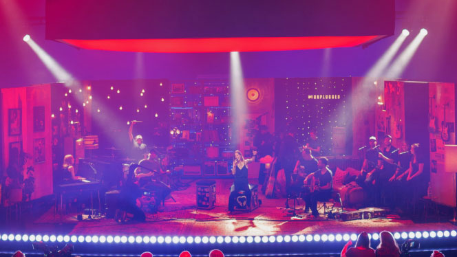Austria - Prolights Arena Cob4FC lit Christina Stürmer's MTV Unplugged concert, an event celebrating the 20-year career of the Austrian pop-rock singer. The live broadcast from the Volkstheater in Vienna was produced by Das Rund, set in an environment evoking the intimate atmosphere of a rehearsal room, creating a welcoming and relaxed ambiance.