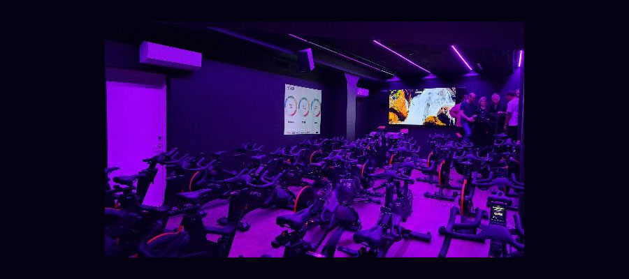 The control system features Optimal Audio’s WebApp, enabling intuitive sound management directly from the instructor bike. Music playback comes via an Argon Audio streaming box, while HDMI connection from the wall-mounted screen delivers immersive ambient audio – including virtual cycling routes with road and environmental sounds – straight through the system.