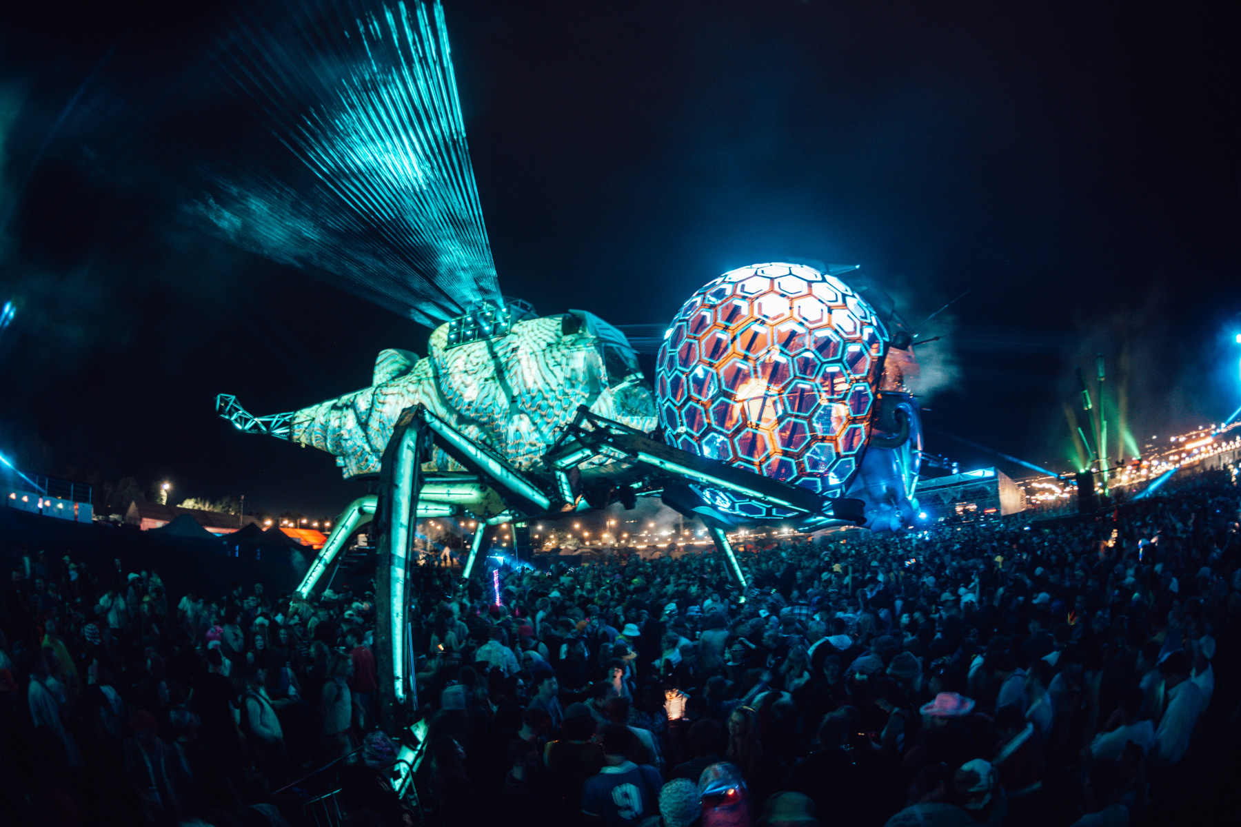 This year, in place of its celebrated flame-throwing, laser-packed Spider, engineered from recycled heavy machinery, Arcadia unveiled The Dragonfly. The sculpture, which was built from a retired military helicopter and scrapped excavators, saw artists including Fat Boy Slim and Eric Prydz perform from its dazzling head. This, in turn, featured a pair of glittering compound eyes moulded from a tangram of video screens.
