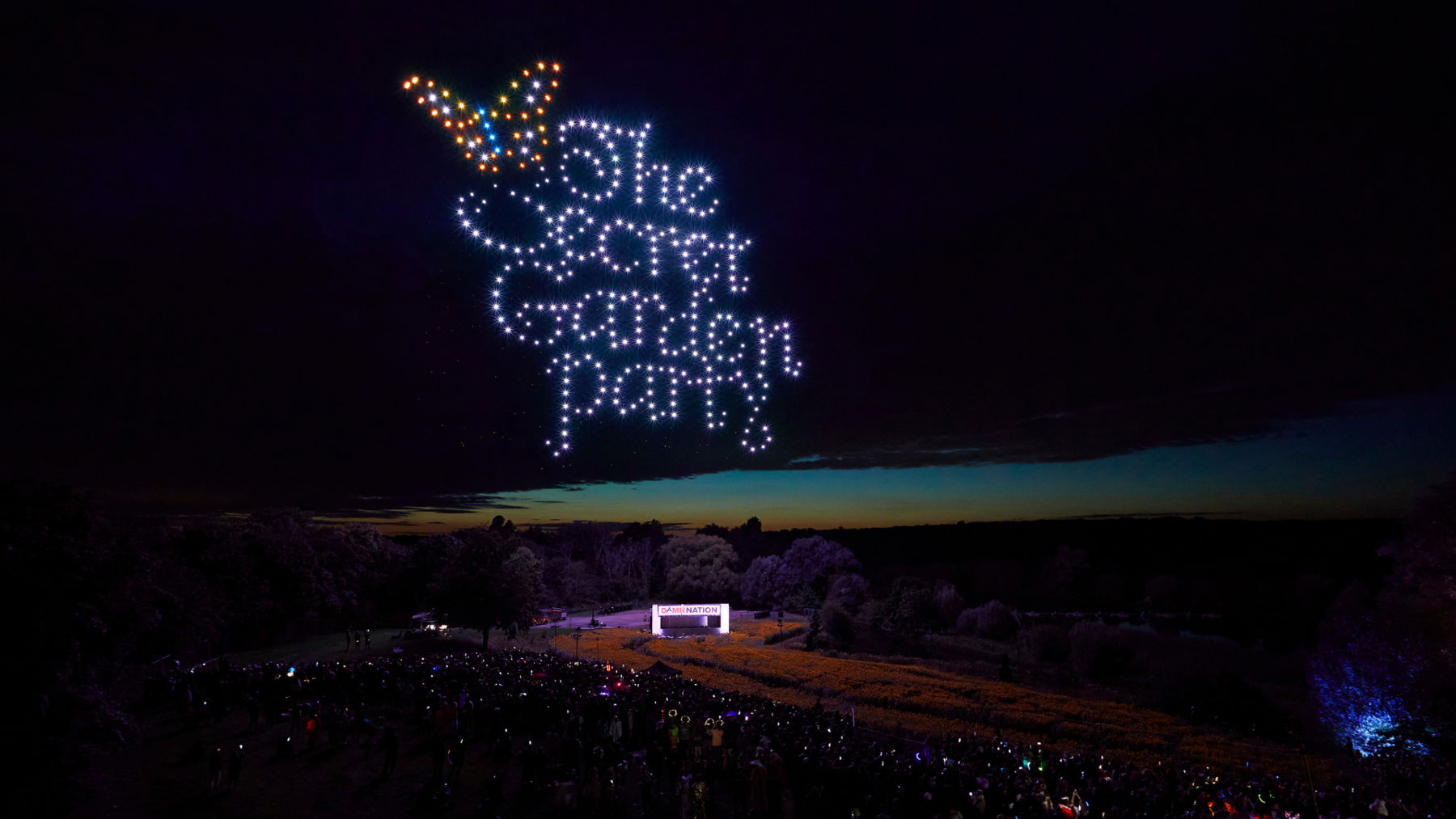 UK - Celestial, the Somerset-based drone show artists, lit up the skies above The Secret Garden Party in Abbots Ripton, Cambridgeshire, on Saturday night as part of the That’s Show Business spectacle with its drone show, Creativity Unchained.