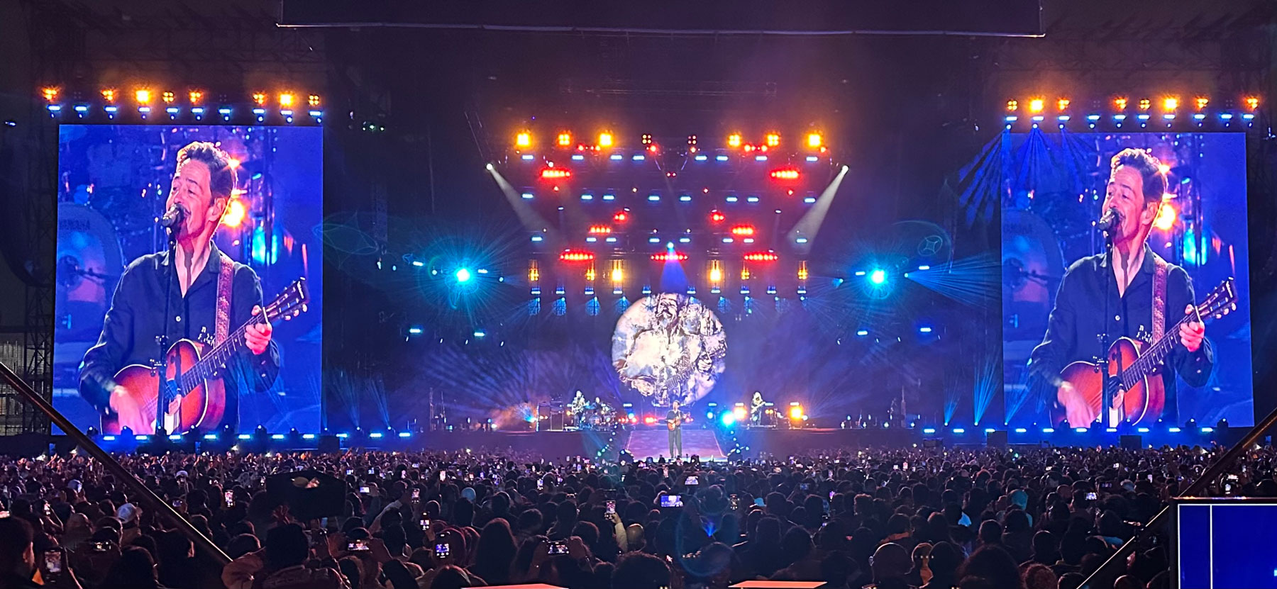 Creating a steady stream of looks for a three-hour set without being repetitive is no easy task. Peralta and his team met this challenge in part by using an automation truss system and vanish stealth screen that helped them come up with varied backgrounds throughout the 35-song set list.
