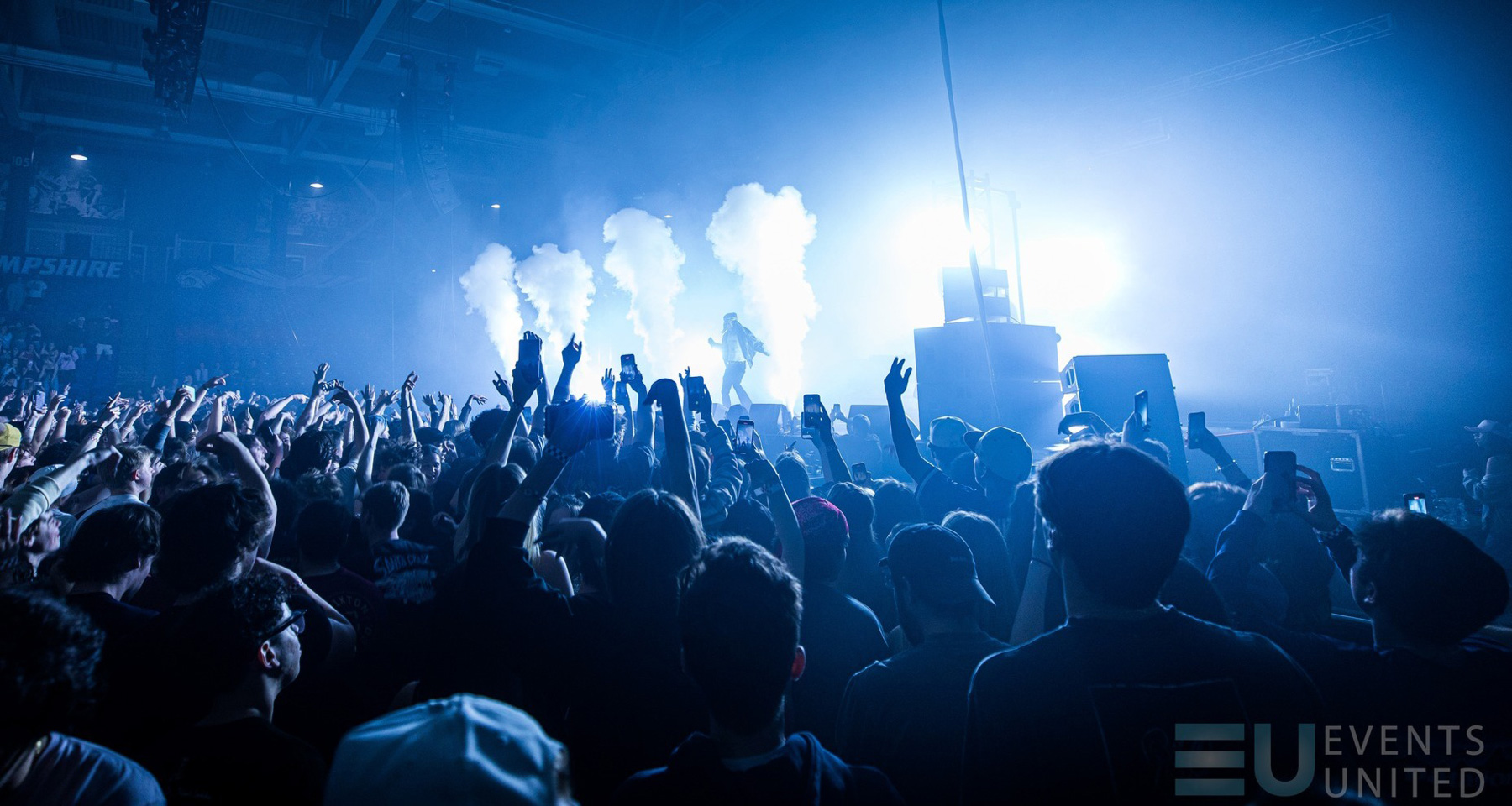 USA - The University of New Hampshire Spring Concert, headlined by MTV Award nominate rapper Lil Tecca was backed up by a bold and intense light show created by the Events United team that featured 58 Chauvet Professional fixtures, and 30 F4 IP video tiles.