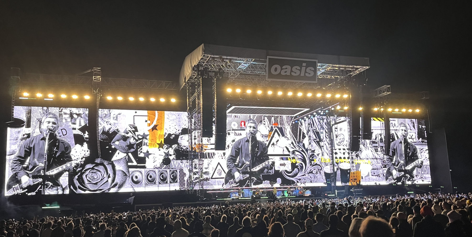 Featuring distinct geometric patterns, reflective of the Oasis logo, and a broad palette of vivid colour combinations, Normandale’s lighting creates a crisp, contemporary look on stage that manages to be intense, while also projecting a warm, welcoming vibe. His clean design works in close harmony with the images on the show’s wide (about 100m) video wall that were created by Chris Curtis of I’m Your Boss Films, and Neil ‘Shop’ Harris.