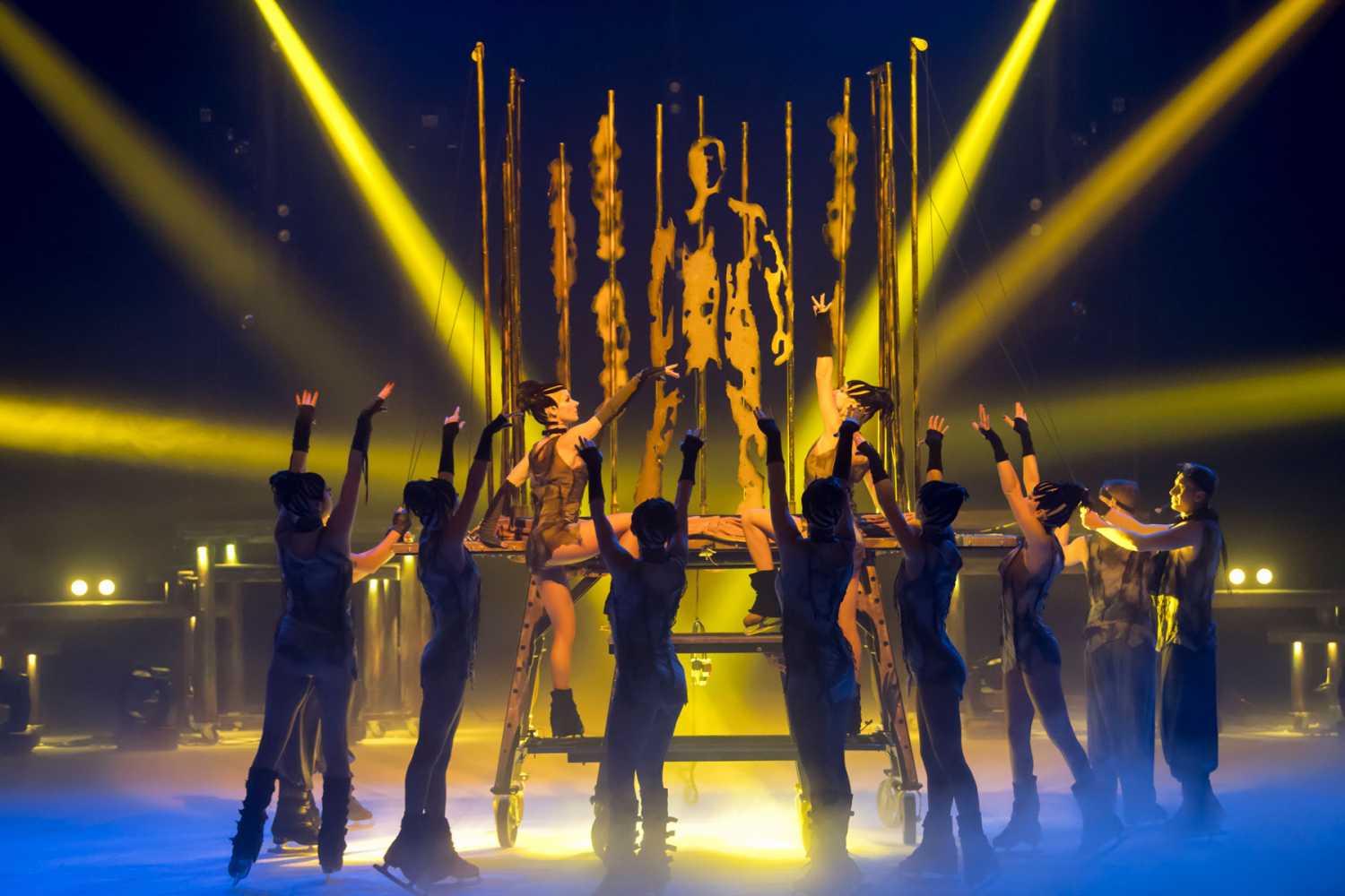 Morgia’s biggest challenge during the show’s design process was “to consider the huge white surface of the ice rink. That isn’t easy since the ice reflects any light pointing at it; that’s why we decided to use the overhead lights and mainly focus them straight down”.
