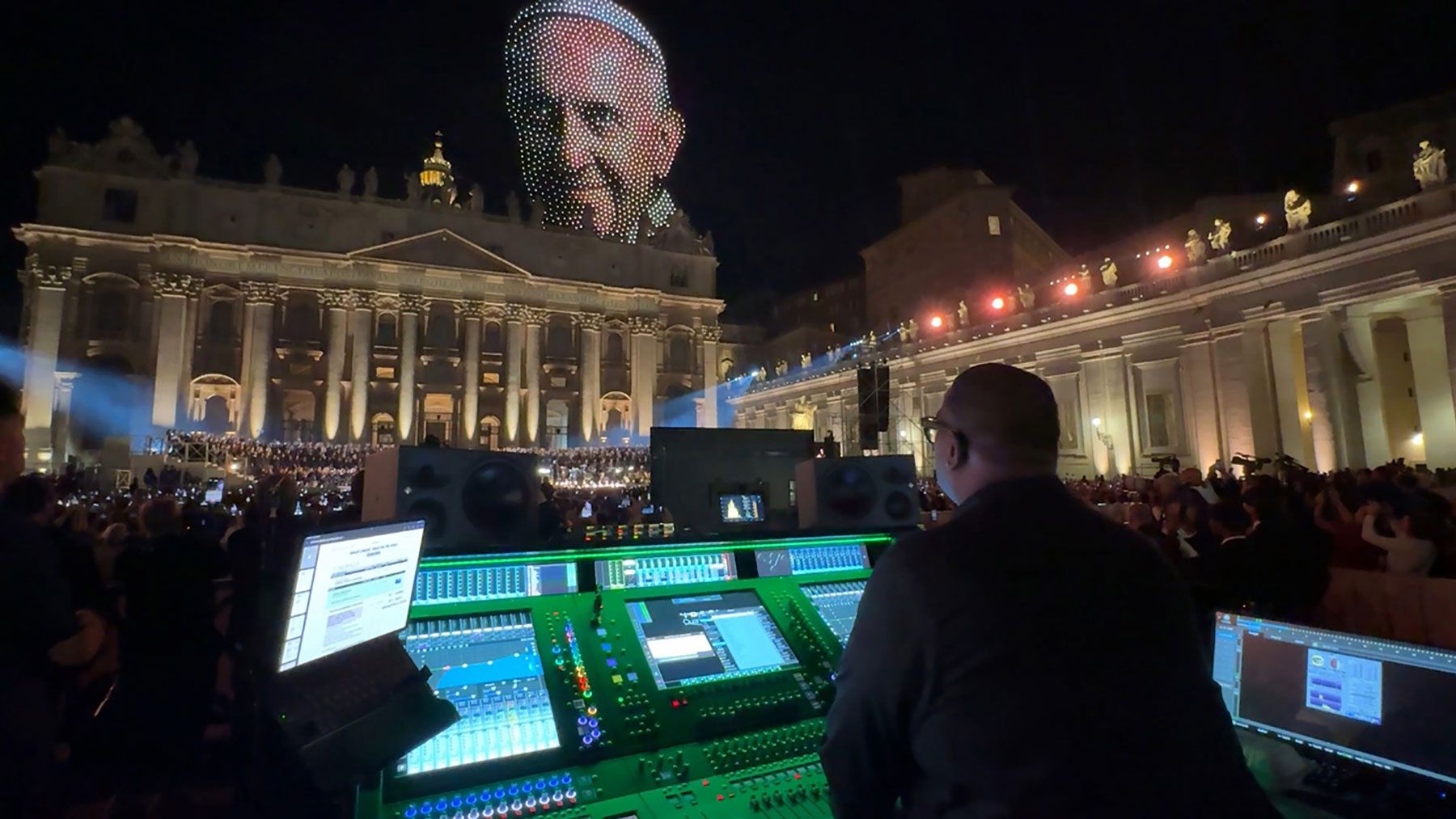 “This was more than a concert, it was a true event, and the broadcast put it on a level with a world-class awards show,” observes Jeremy Peters, who works from Clair Global subsidiary Sound Image’s Escondido, California office, and who served as the production’s audio co-designer with audio supervisor Michael Abbott. “This was literally the equivalent of a Grammy broadcast, but in St. Peter’s Square, as if it was in Las Vegas. It was very much a team effort to pull this off in such a short amount of time, but it really came together incredibly well.”