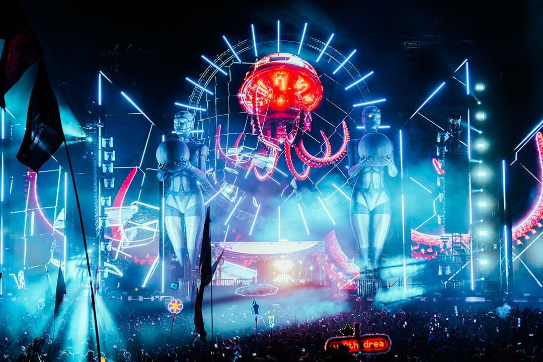 USA - Dreamstate SoCal's creative design team’s vision for their main 70ft high, by 160ft wide, and 60ft trim stage was to deliver a production that took fans on an evolving journey across the universe.