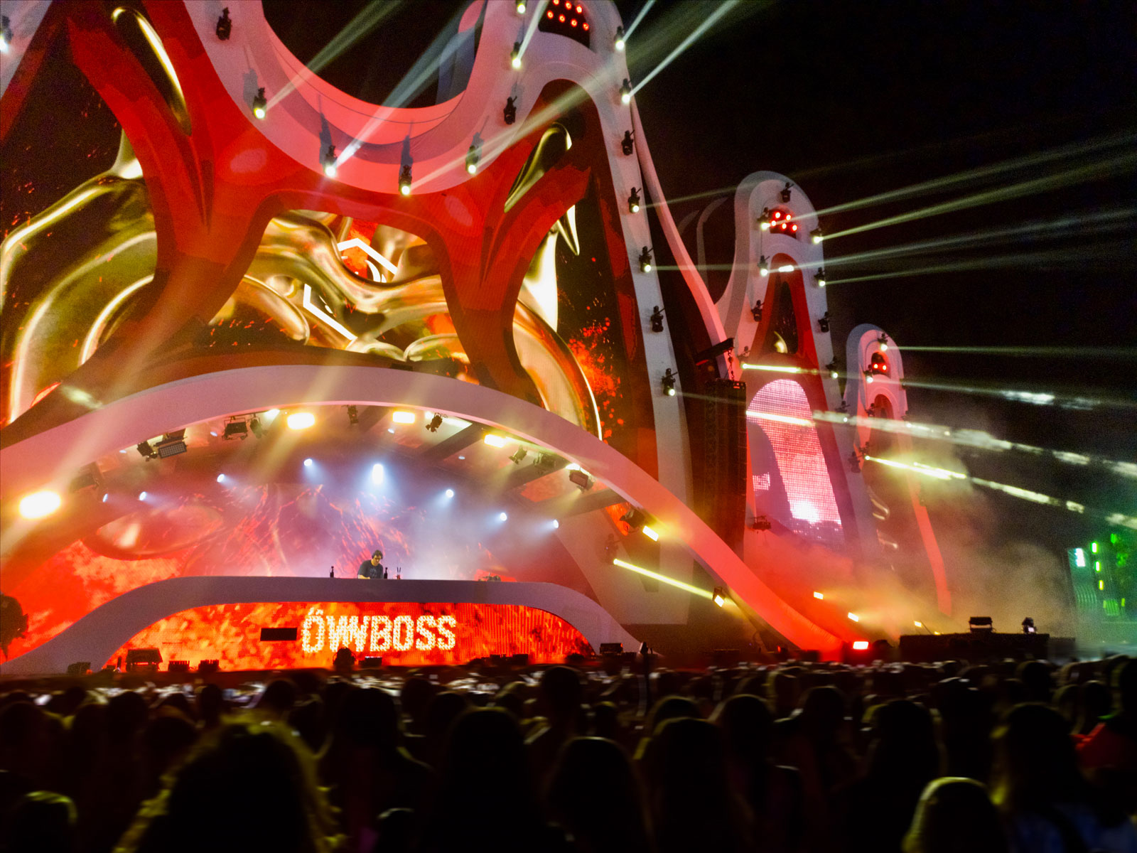 The stage featured four PAs with 10 GTO boxes each, 48 DBS 18-2 sub-bass units, and 12 Mantas 28 units for front-fill, all supported by Newton processors for precise matrix management of two Yamaha consoles.