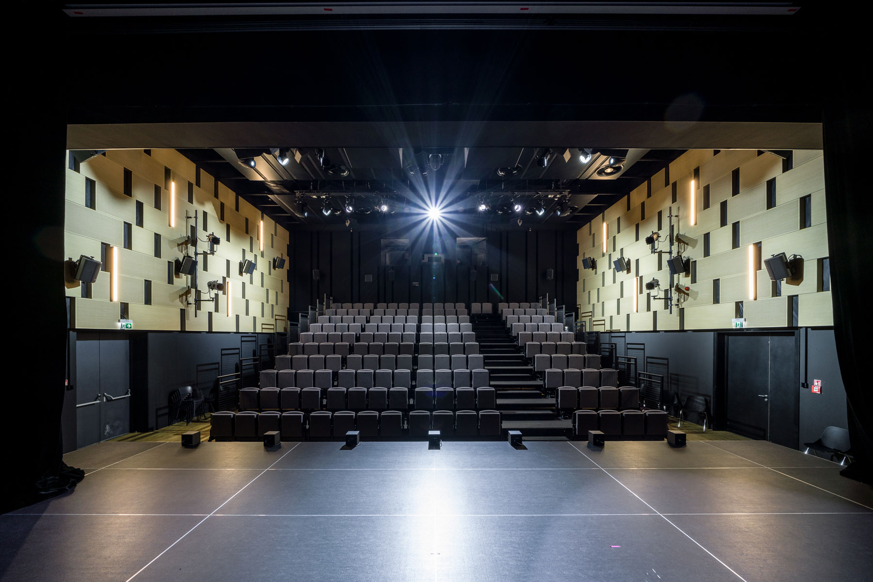 Audio Plus’ long-time contractor Sound Design & Stage Technology proposed an immersive audio technology design based on L-Acoustics L-ISA technology for the space. The city of Gdańsk was excited by the idea, and the proposal was accepted. Audio Plus, L-Acoustics certified distributor in Poland, was appointed general contractor for the project to provide sound and stage technology for the entire venue, including the auditorium, overseeing a mix of several subcontractors, with lighting delivered by LTT, stage mechanics by BSC, cinema equipment via Awaco, and finishing touches, including the acoustic cladding, entrusted to ESM Systems.