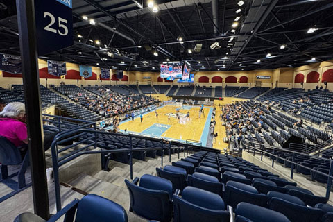 Four Domino Profiles were rigged on a circular overhead video truss, and another four on the structure above the ice surface, two above each goal, from where the incumbent team make