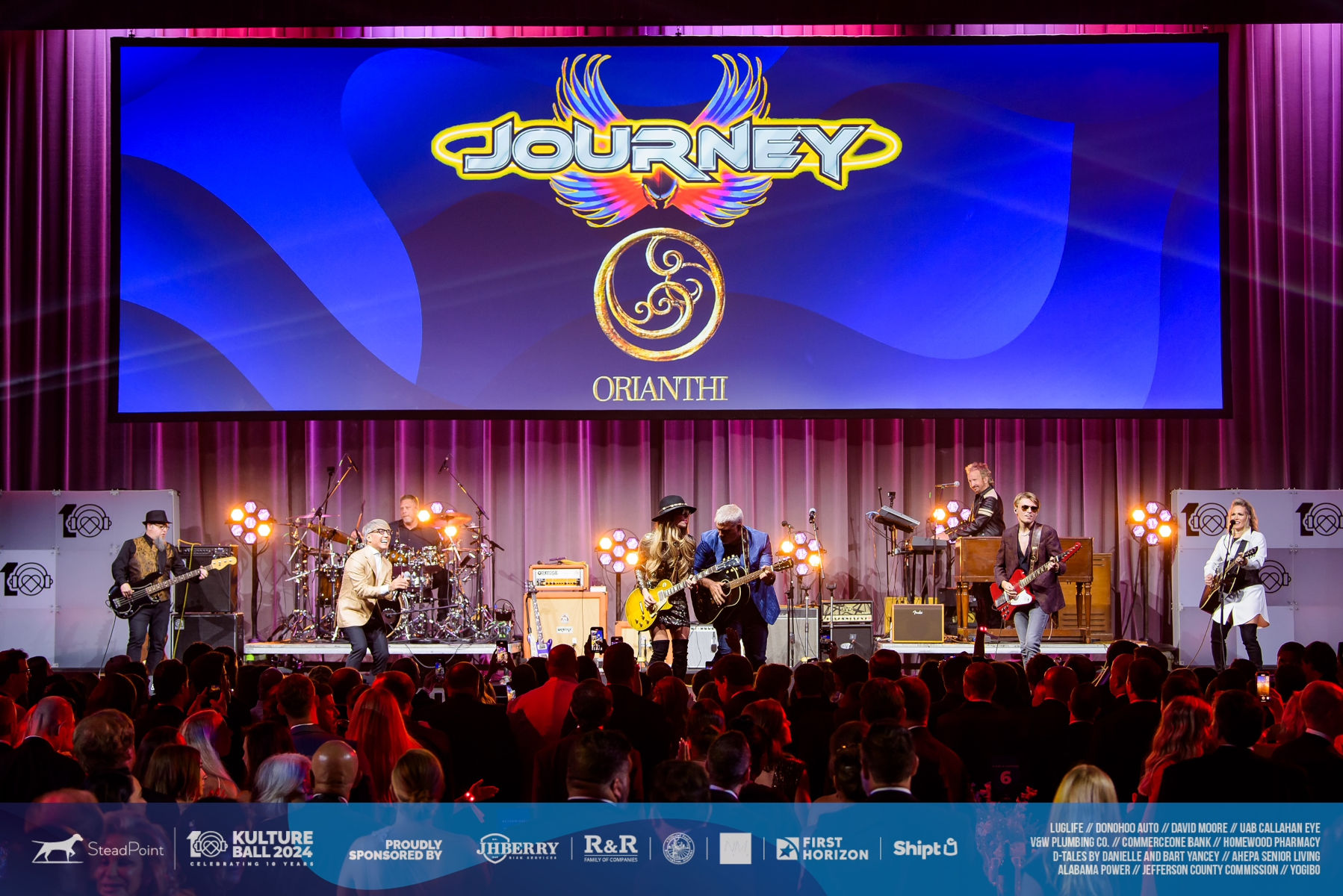 KultureBall 2024 took place inside the historic Boutwell Auditorium, one of Birmingham, Alabama’s most storied venues. To accommodate the event’s wide range of programming, Epic designed an AV layout that included a traditional main stage, an extended downstage platform for the orchestra, and a round stage in the centre of the venue for keynote moments and performances.