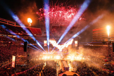 The artist’s long-term LD, Jason Baeri, had been an early adopter of the powerful fat-beam LED fixture, with its massive 750mm beam diameter, when he specified a pair of heads for the Canadian artist’s grand walk-on at this year’s Grammy Awards back in February. “But this time, the deployment was very different,” he states. “For the Grammys we just needed something that had an awesome amount of power behind it, without having to deploy 20 different fixtures. The Mad Maxx was the most effective tool for the Grammys, whereas this time we are taking advantage of the considerable throw, and the nature of this being a giant sky-tracki