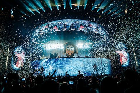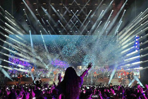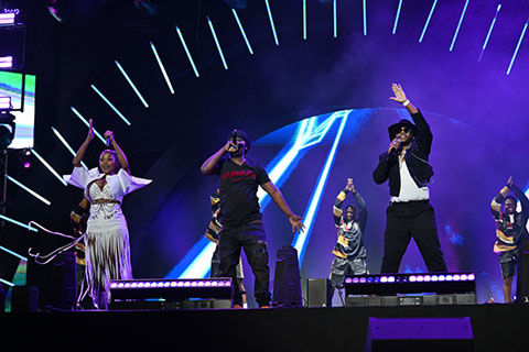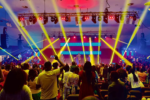 Chris chose to work with Robe Esprite moving lights and one of the new Robe iBOLTS, which were applied with great effect together with projection mapping of the South African flag onto the building.