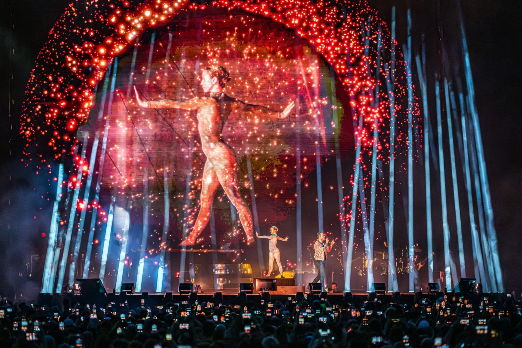 Mamo Pozzoli, the tour’s lighting designer and a long-time Cesare collaborator, created a powerful and innovative lighting plot characterised by multiple moving circular structures and a strong focus on graphic fixtures.