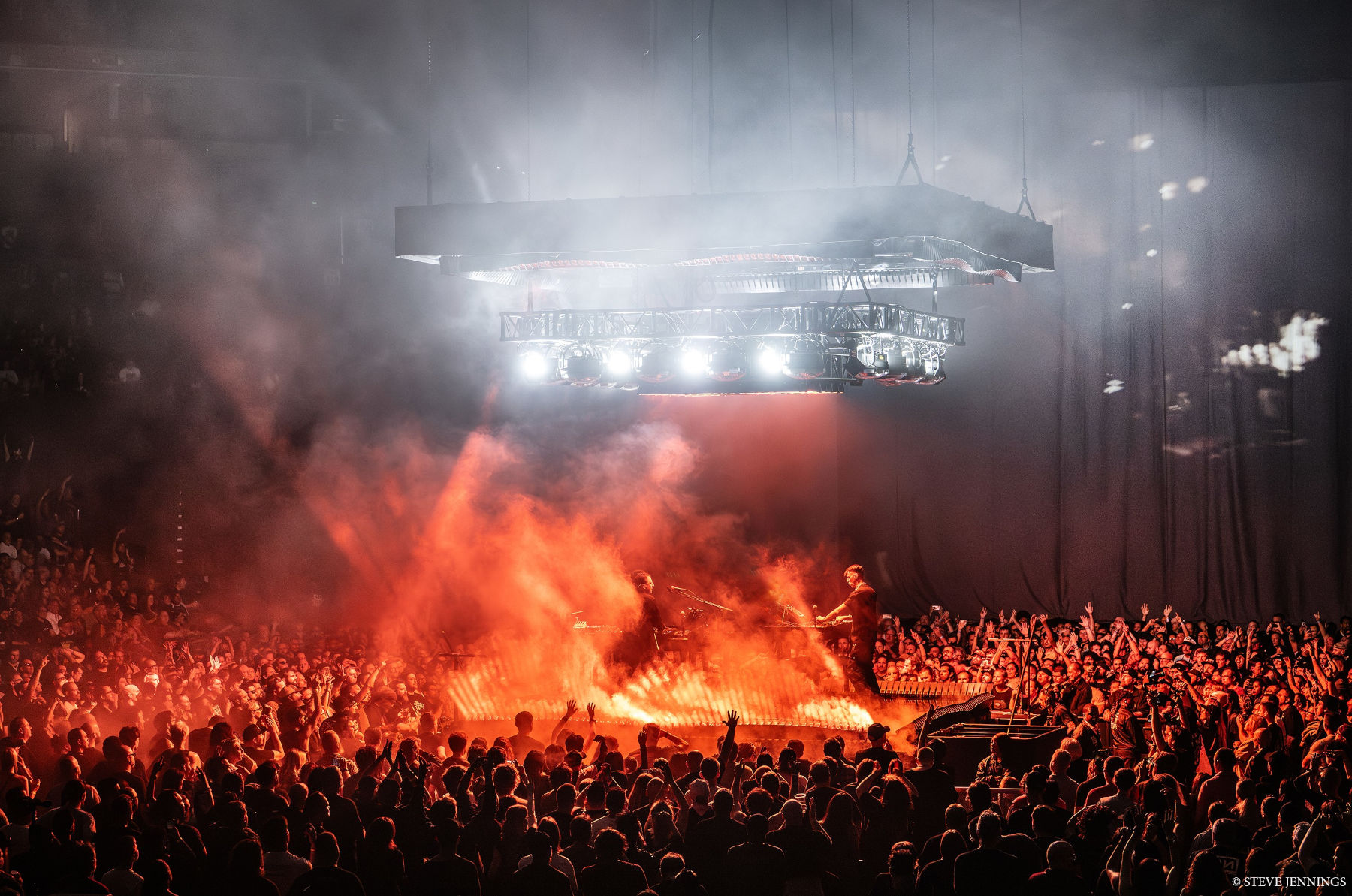 This journey begins on the 360° B stage located in the middle of the arena floor, where frontman Trent Reznor performs A Minute To Breathe lit by Chauvet Professional OnAir Panel soft white lights, and later moves on to a full-fledged visual blitzkrieg on the main stage.