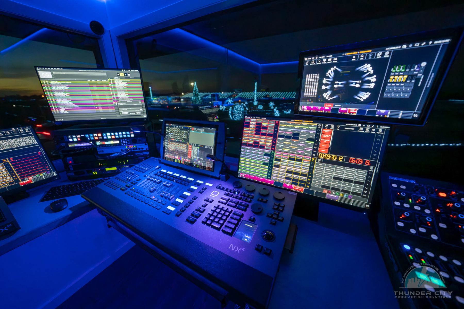 Central to the project, which is scheduled to return in 2025, was the Onyx platform, serving as the backbone of a sophisticated lighting network spanning 501 Universes. Guests experienced a high-impact drive-thru light show featuring synchronised displays, including a light tunnel, themed shows, dozens of pixel-mapped set pieces, and fully lit grandstands. Towers were lined with pixel lights, complemented by a full array of moving lights.