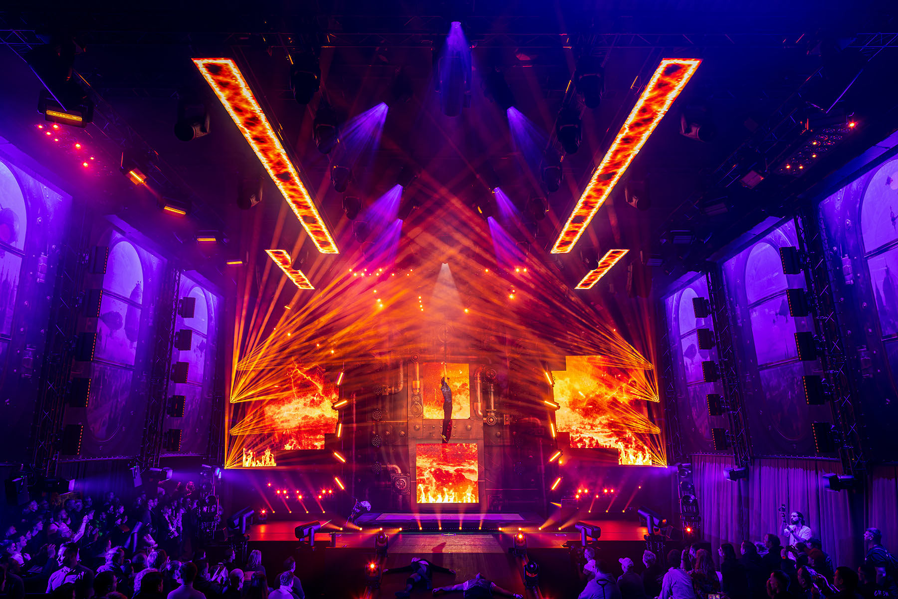 60 of Robe’s new SVB1 – a versatile, pixel-mappable moving head – were central to the show design. These were distributed above and behind the stage and as part of the floor package lining the ramp up to the stage. The multiple levels and layers of SVB1 properly showed off its adaptability and dynamics. As you might expect, the new WTF – Wash Twist Flash was also prominent.