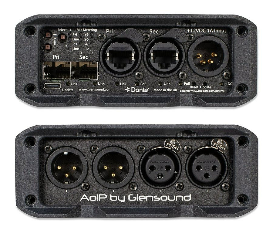 Latency across the whole Dark range is minimal, allowing engineers to build the network they choose. The Dark22M includes gain controls on the box, and all Dark devices can be controlled over the network, using the free GlenController Windows app or any network device controller using UDP.