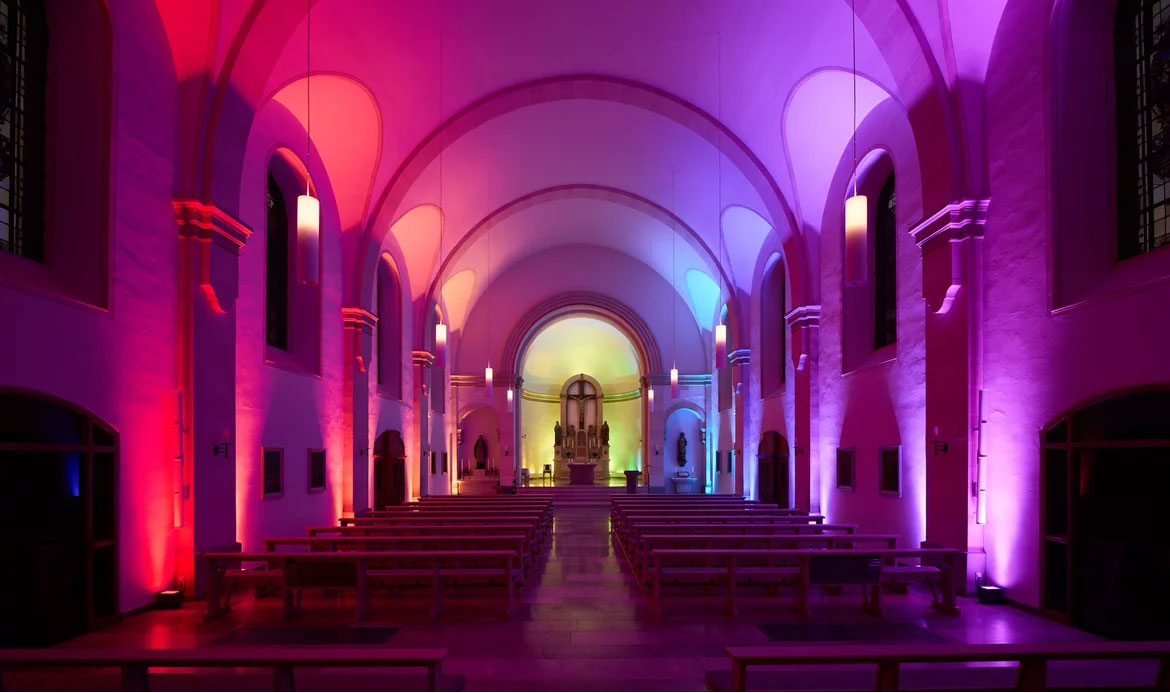 After a year-long renovation, the church now features a state-of-the-art media system by MediaKi, enabling visitors to control personalised lighting and soundscapes via a touchscreen terminal. Spearheaded by Schröder & Partner engineering firm, the project harnesses Prolights' LED fixtures to create effects that range from serene to celebratory.