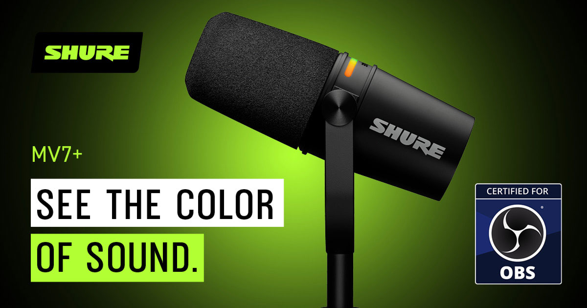 UK - In collaboration with the Open Broadcaster Software (OBS) Project, Shure has announced that the MV7+ is one of the first microphones to receive OBS certification.