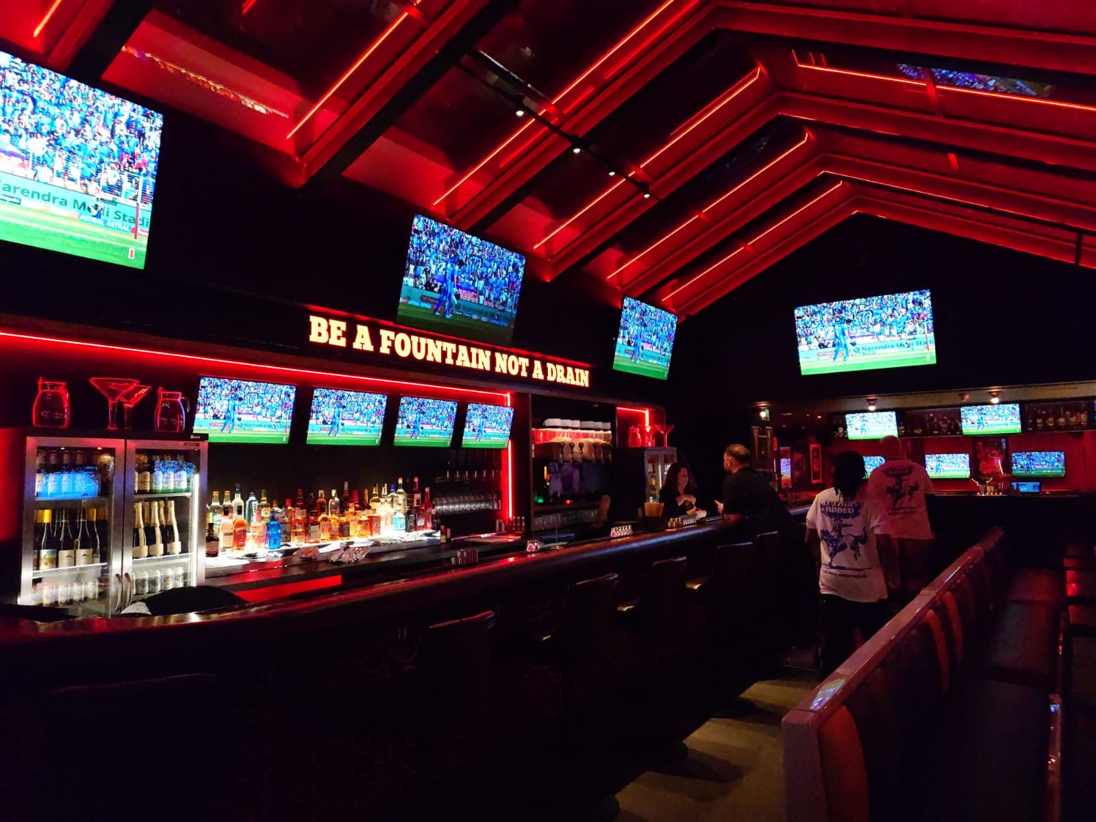 “One of the most interesting and on-brand features of BLOODsports was an LED ticker tape, which we installed above the bar,” recalls Cornish. “We commissioned a custom 9m by 250mm ticker-style LED, which is used for displaying slogans, drinks promos and sports stats.”