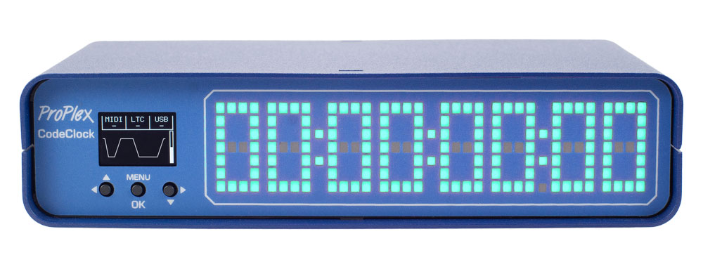 The ProPlex CodeClock is a compact, rugged timecode display and distribution unit, winner of the Gear Product of the Year Award. Its large RGB LED matrix changes colour to show status, and it receives timecode via LTC (XLR3), MIDI (DIN), or USB MIDI - or can generate LTC itself. It redistributes timecode through three transformer isolated XLR3 outputs with adjustable levels and includes an OLED screen with waveform and level monitoring. Powered via USB C with a locking retainer, it’s both portable and mountable, with optional rack and yoke accessories.