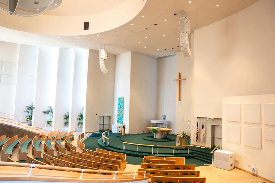 A good example of this high art is St. Peter’s Lutheran Church, constructed in 1988, and described as ‘an architectural masterpiece’. But for all its aesthetic beauty, delivering an evenly-distributed sound through the sanctuary to the 750 congregants - sat in a series of rising levels of concentric, but irregular circles - had proved historically difficult before the adoption of a Martin Audio line array.