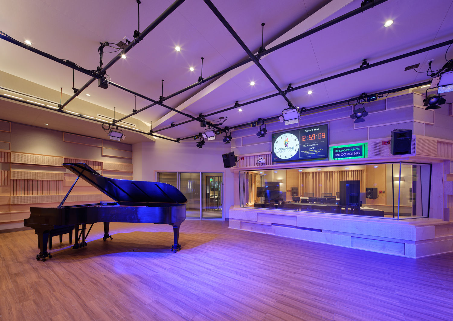 The heart of CPR is its two on-air studios, dual interview studios with corresponding control rooms, and its large performance studio. The large performance studio can be utilised for everything from large ensemble performances to rock bands, to film scoring, to film screenings. The studio also features a full production lighting setup for video.