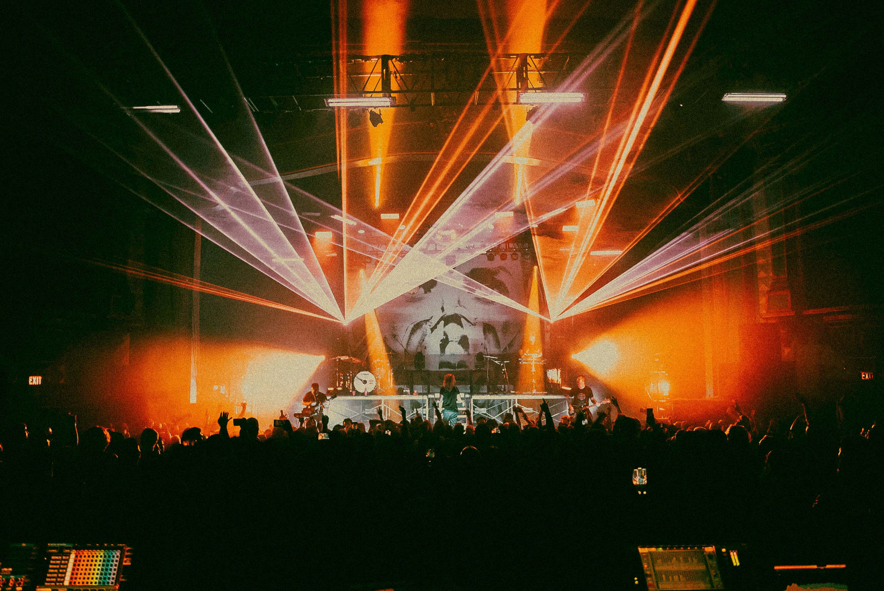 With the minimal initial visuals, Underoath gave a glimpse at the physical practice space in which They’re Only Chasing Safety came to life. The setlist featured a playthrough of the album, then added newer music as well as more lighting and production elements along the way. By the time the end of the set neared, Sasso described the visuals as “full tilt”, complemented by a pair of X-Laser Skywriter HPX M-10 fixtures.