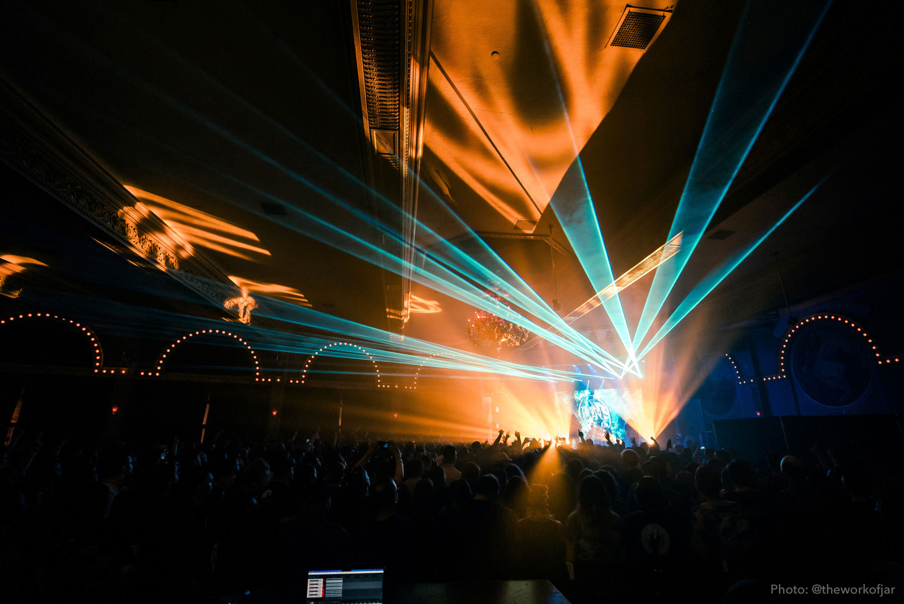 “A nice thing about the lasers was that since they were mounted above the video wall, I could set their zones to be as wide as possible and fill the room horizontally with those awesome aerial laser effects,” explained Jarrett. “And on the days when the venue was narrower, I could simply layer the lasers on top of each other to still provide that big-venue impact look that we all wanted.”